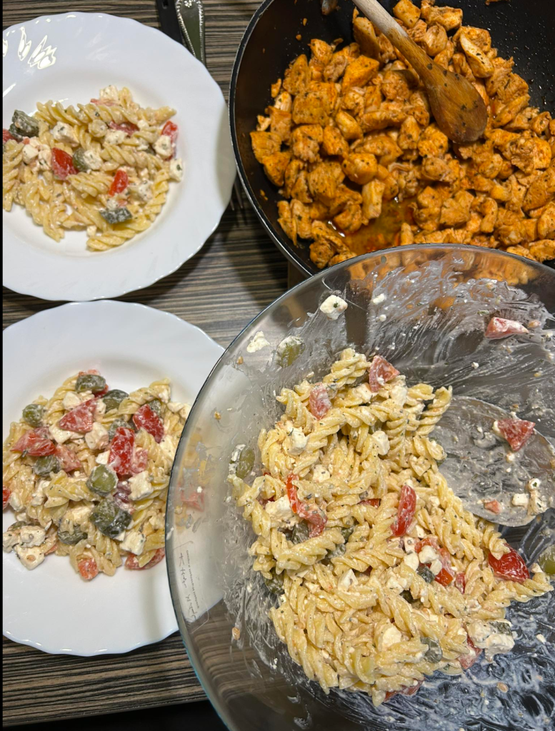 A krumplit meghámozod, feldarabolod, bedobod a sütőbe, közben feldarabolod a zöldségeket és a csirkét picit újramelegíted. Végül csak össze kell keverned a joghurtot a fűszerekkel
