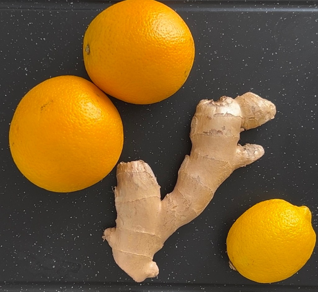 Innentől semmi más dolgod nincs, mint megpucolni a narancsot és a citromot (a gyömbért ne pucold meg, csak mosd meg!), majd pedig ezeket felszeletelni. Minden hozzávalót turmixgépbe teszünk, megszórjuk kurkumával és felöntjük egy kis vízzel. Végül pedig leturmixoljuk.